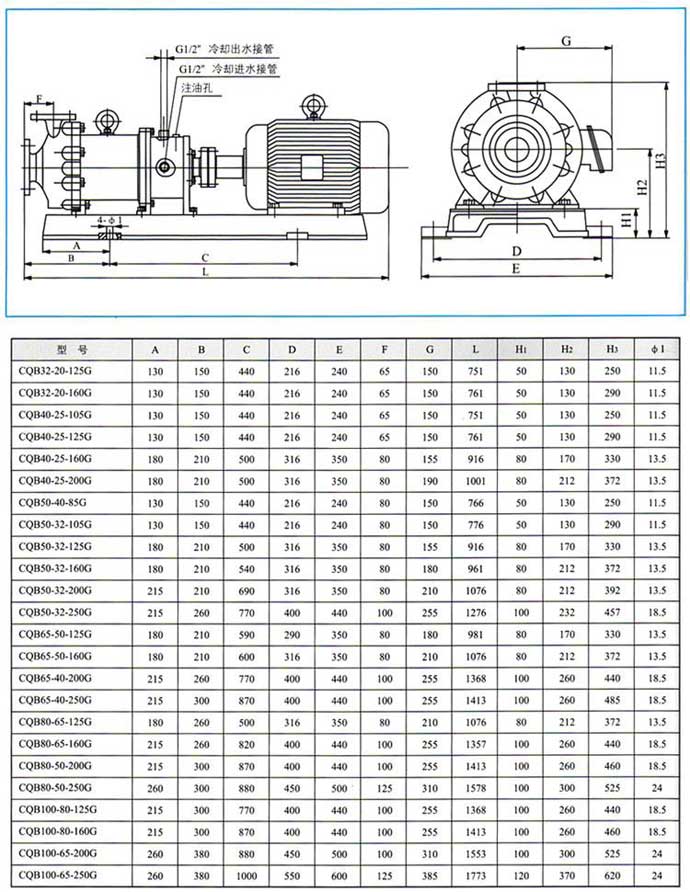 CQB-G型耐高溫磁力驅動泵進出口法蘭尺寸