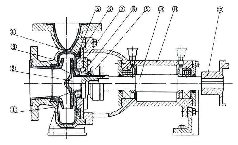 IHF型泵為單級單吸式氟塑料合金化工離心泵,是按國標設計并結合非金屬泵的加工工藝設計生產的。該泵具有耐腐蝕、耐磨、耐高溫、不老化、機械強度高、無毒分解、使用溫度寬等優點。泵體采用金屬外殼內襯聚全氟乙丙烯(F46)、葉輪和泵蓋均采用金屬嵌件外包氟塑料整體燒結壓制成型,軸封采用外裝式波紋管機械密封。