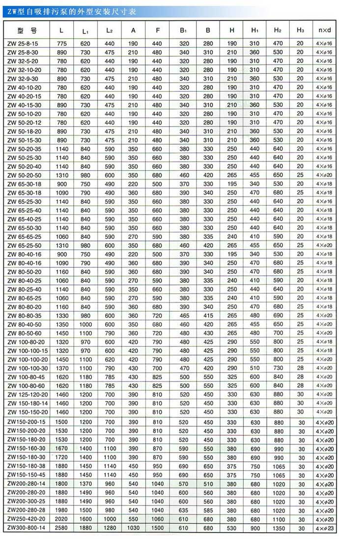 ZW型自吸式排污泵是本公司設計人員根據ZX型自吸離心泵及QW型污水泵的結構及性能,借鑒國內外同類產品之優點,并多方面吸收廣大用戶的使用要求和所提意見,研制而成的集自吸及排污一身,既可象一般清水自吸泵那樣不需安底閥,不需灌引水,又可抽吸含有大顆粒固體直徑為出口口徑的60%和纖維長度為葉輪直徑1.5倍的污物、沉淀物、廢礦雜質、糞便處理及一切工程污水物和膠質液體,完全減輕工人的勞動強度,而且使用、移動、安裝方便,極少維修,性能穩定。