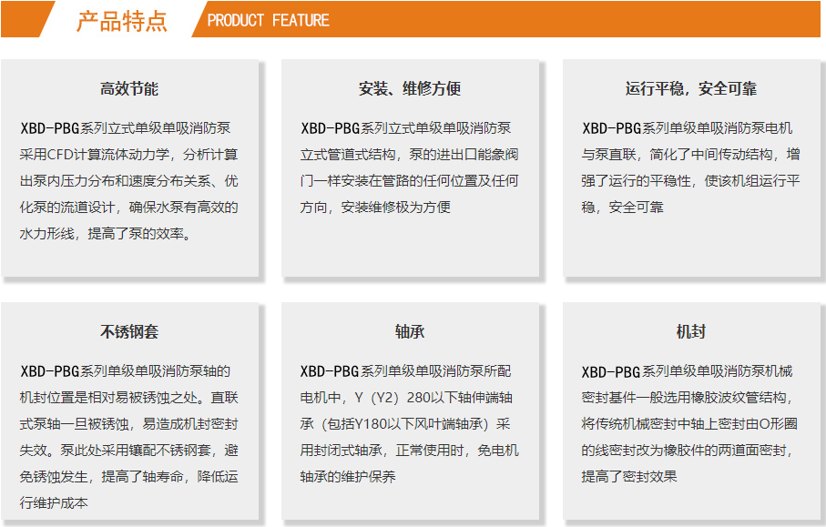 XBD-L系列立式單級單吸消防泵組參照中華人民共和國消防泵標準GB6245-2006 《消防泵性能要求和試驗方法》之規定,參考現代優秀的水利模型設計而成,專門用于消防系統的離心泵;產品經國家消防裝備質量監督檢測中心測試合格,獲得消防產品認可證書。產品主要用于消防系統增壓送水,也可用于廠礦給排水,產品性能達到國內同類產品的先進水平。