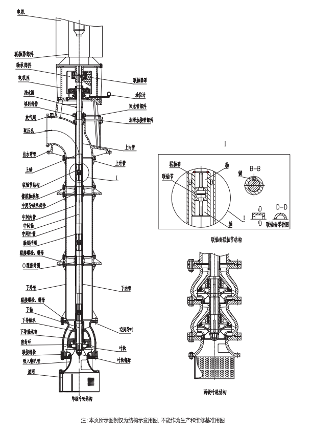 5、長軸泵的裝卸,安裝應采用專用吊裝設備以避免由于吊裝不合理造成泵的損壞。