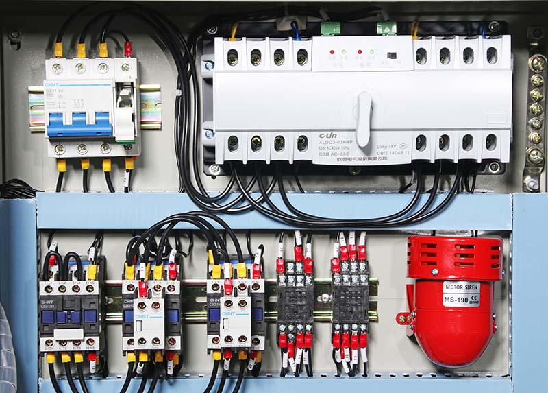星三角啟動消防控制柜,是消防巡檢柜、消防控制中心、消火栓箱按鈕等對消防泵控制的直接執行重要元件,當15KW星三角啟動消防控制柜接收到控制中心等的消防信號時,便會立即按指令啟動或停止消防水泵,以此來實現自動開泵及停泵之用。本產品可控制兩臺消火栓水泵,一用一備。當常用的水泵發生故障時,備用水泵自動開機并投入運行,保證消防水的可靠供給。本產品也可在緊急情況下手動控制給水,手動、自動切換可通過萬能轉換開關實現。另外,控制柜對電動機具有缺相、短路、過載等保護功能。